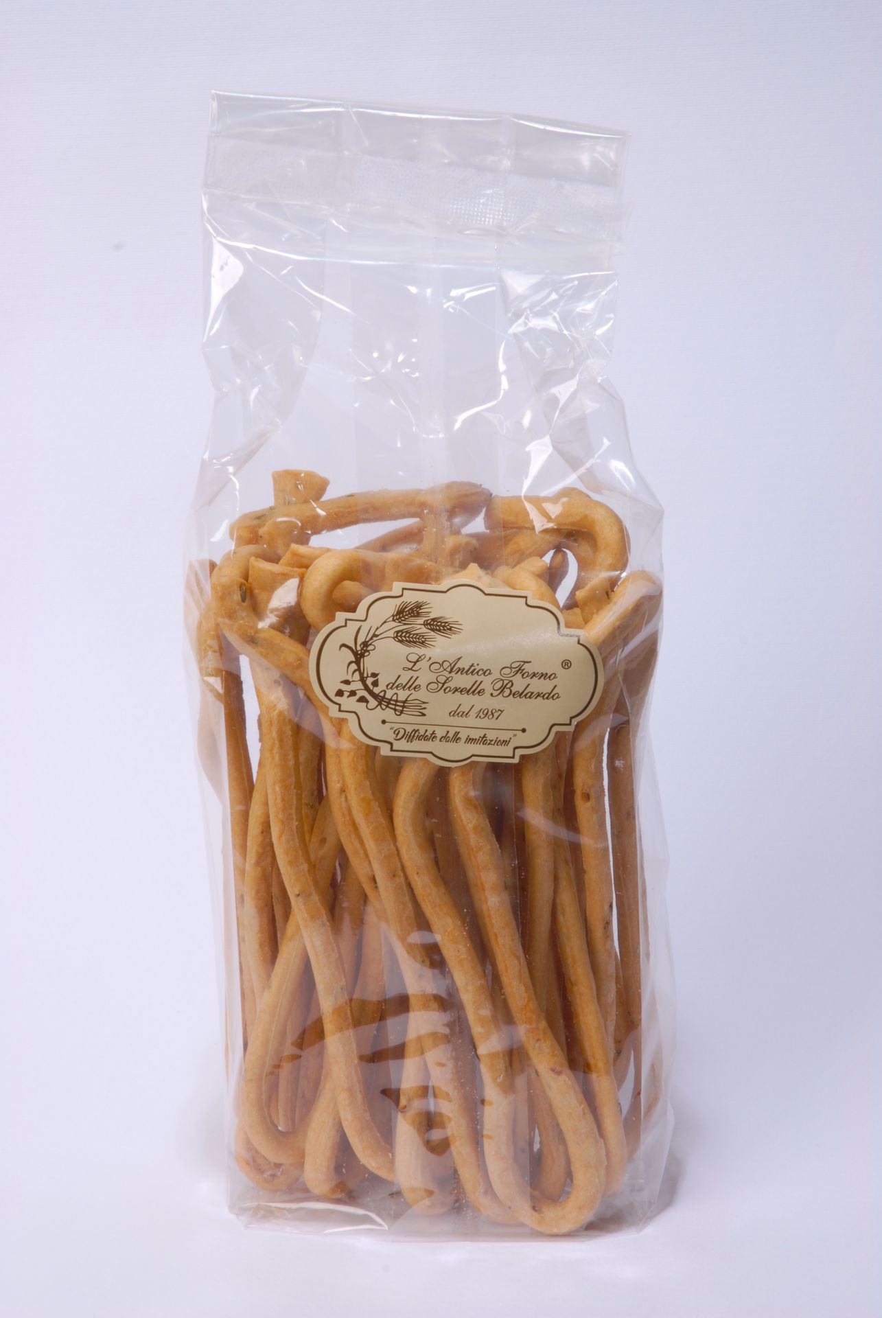 Ingredienti:farina "0",semola di Grano duro, olio di girasole alto oleico, olio di oliva,acqua, finocchietto selvatico 1%, sale.