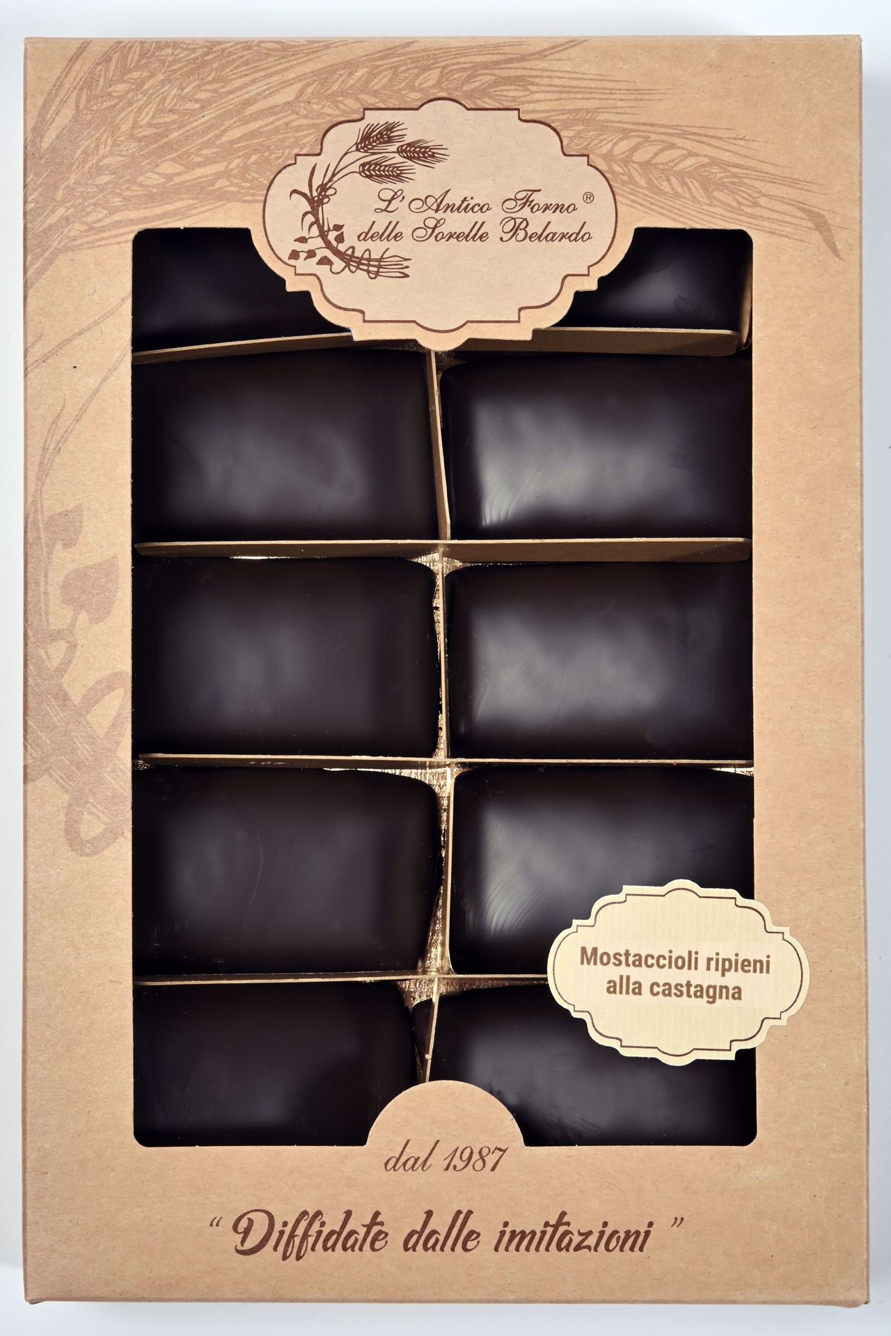 Prodotto Natalizio, Ripieno castagna, glassato al cioccolato Fondente, cotto in forno.