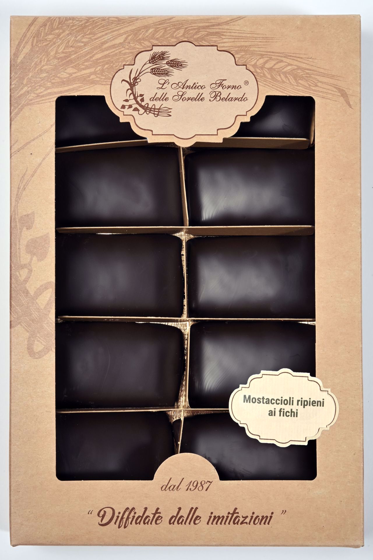 Prodotto Natalizio, Ripieno Fichi, glassato al cioccolato Fondente, cotto in forno.